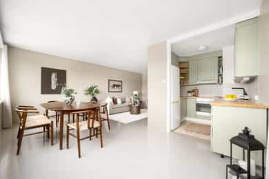 Velkommen til Skrabben 1B! Fredelig og sentral beliggenhet i etablert boligområde på Skøyenåsen. Boligen ligger fint til og har en god og hyggelig beliggenhet med kort vei til Østensjøvannet. Skøyenåsen nærsenter med bl.a. matbutikk, lege, tannlege og fysioterapeut ligger noen få minutters gange fra boligen. Her har du også nærhet til både skoler, barnehager, samt et rikelig utvalg av servicetilbud på Bryn Senter, Oppsal senter, Manglerud og Lambertseter. Samtidig er det kort vei til offentlig kommunikasjon. Østmarka er også i nærheten med flotte turstier om sommeren, og preparerte skiløyper om vinteren. Det er også kort vei til Østensjøvannet med vakre rekreasjonsmuligheter og et rikt fulgeliv. Tursti fra Østensjøvannet fører rett inn i Østmarka med store turområder, lysløyper og flere fine badevann. Østmarksetra og Rustadsaga er naturlige samlingspunkt i Østmarka og ved Nøklevann er det som medlem av Nøklevann ro- og padleklubb mulighet for lån av kanoer og kajakker sommerstid. Aktiviteter og fritidstilbud: Flotte fasiliteter på Oppsal Arena som tilhører Oppsal idrettsforening har et bredt tilbud av idretter. Trasop kunstgressbane og friidrettsbane ligger rett utenfor hallen. Nøklevann Ro- & Padleklubb (NRPK). Det er også kort vei til golfbane (Grønmo golfklubb), ridesenter, tennisanlegg, alpinanlegg, treningssenter og Bøler Bad med ekstra oppvarmet vann. På Godlia Velhus er Godlia Filmklubb og Godlia Barnefilmklubb samt Oslo Amatørbryggerlaug. Kollektivtilbud: Boligen ligger ca. 3 minutters gange fra Skøyenåsen T-banestasjonen. T-banen tar deg til Jernbanetorget på ca. 15 minutter. I tillegg har du busstopp kun 3 minutt gange fra leiligheten, her finner du linje 3N, 78A og 78B! En kort prat med selger: Hva kommer du til å savne med boligen/området? - Utsikten, det vakre lyset, følelsen av å bo rolig, skjermet, nær naturen, samtidig som det bare er et minutt unna t-banen som tar oss ned til sentrum (eller en vakker sykkeltur ned til Munch brygge langs Akerselva). Beliggenheten er unik! Kveldssola på balkongen på varme sensommerkvelder og den gode stemningen med naboene vil vi også savne. Hvilke er dine favoritturer i nabolaget? - Rett opp til Østmarka og opp på den første lille toppen der som gir utsikt over hele byen, ned til fjorden. Lett tilgjengelig pustepause etter jobb. Og den klassiske runden rundt Østensjøvannet som er to minnutt unna - enten på en rolig trilletur under vårgrønne trær, eller rask joggetur i vintermørket. Og når det er is på vannet er skøyter en nabolagsfavoritt Hva er nærmeste kollektivtilbud og hvilke ruter finnes der? - T-bane 2-3 minutt gange. Linje 3 går hyppig til sentrum og til Mortensrud. - 3 min gange til busstoppet Skøyenåsen. Hvordan er nabolaget? - Rolig, stabilt. Fin blanding av eldre og familier.