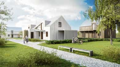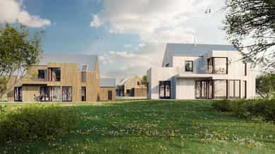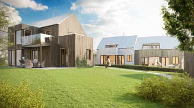 Prosjektet Lervik Panorama omfatter tre eneboliger på 170 kvm og en tomannsbolig med to leiligheter på 100 kvm. SG Arkitekter har i over 40 år satt preg på Østfolds offentlige bygg, fritidsboliger og eneboliger, og her har de tegnet noe av det fineste innen moderne nordiske trehus. Med en nydelig beliggenhet rett ved sjøkanten på Lervik vil man selvsagt utnytte den flotte utsikten. Derfor er uteområder og terrasser prioritert. Både eneboligene og leilighetene strekker seg over to etasjer, og det blir selvsagt takterrasser. Eksteriøret henter inspirasjon fra både gamle sjøhus og moderne funksjonalisme, og boligene smelter fint inn i kystlandskapet. Her møter tradisjonelt saltak, kubistiske utspring og firkantede takoppløft. Kledningen er smal, stående og beiset så treets naturlige overflate skinner gjennom. Takene tekkes med profilplater av aluminium, som både er svært holdbart og gir et stilrent uttrykk. De fleste av boligenes mange store vinduer strekker seg helt ned til gulvet og nesten opp til taket. For eksempel får alle boligene et vindu i andre etasjes gang med et eget takoppløft som slipper inn maksimalt med lys. Boligenes lekne form og mange hjørner gir fine muligheter til å utvikle sin egen foretrukne bruk av uteområdene. Eiendommene organiseres som et sameie med delt ansvar for vedlikehold av vei og utvendige fellesområder så som den fine lekeplassen og grillplassen som blir anlagt i tomtens ene hjørne. Hver bolig får sin egen romslige hage som kan formes etter egne visjoner og drømmer. De leveres klare for såing, eller med ferdig plen som er et tilvalg. Det vil også fremlegges en gjennomtenkt utomhusplan som kan følges i hagearbeidet. - Moderne, rent og naturlig - Både eneboliger og leiligheter vil oppleves likt, og de får samme høye kvalitet i materialene og innredningen. Du kommer inn i entreen og trår på store italienske terrassofliser. De slette, lune veggene forløper listfritt over i taket og er malt i samme farge. Inn til høyre er det avsatt god plass til garderobeløsninger. I eneboligene ligger separat vaskerom og bad til venstre bak hver sin dør. Vaskerommet har dessuten egen utgangsdør, noe som er praktisk for barnefamilier. I leilighetene er badet plassert til høyre, og vaskerommet ligger innenfor badet, skjult bak en skyvedør. Forskjellen i areal og planløsning gir altså eneboligen litt flere rom, men alle badene får samme delikate utforming. Franske, sandfargede fliser pryder gulvene. Servantskapet fra Haven har eikefronter og en benkeplate som matcher gulvet. Du merker raskt hvordan helhetstanken skaper sammenheng mellom rom og flater. Det fremtredende eiketemaet føles på samme tid eksklusivt, lunt og tiltalende. For eksempel gjentas det i trappen opp til andre etasje som får eiketrinn. Fra entreen ser du inn i resten av første etasje, og du får samtidig en følelse med hva som skjer i andre etasje. Fra både leilighet og enebolig leder en åpen passasje inn til kombinert stue og kjøkken. Her slutter terrassoflisene og glir over i et svært flott eikegulv - oljet, polert og nydelig. Disse gulvene kan slipes flere ganger og er mer stabile enn vanlig parkett. - Åpent og lyst med gode materialer - I eneboligene møter du et et stort areal bestående av tre stuer og kjøkken i åpen formasjon. Ønsker du et ekstra soverom kan du som tilvalg dele av den ytterste stuen. I leilighetene møter du to stuer - altså spisestue og peisestue - som ligger åpent mot kjøkkenet. Felles for begge er at spisestuen er vidunderlig lys. Endeveggen og den tilstøtende hjørneveggen dekkes av glass så det føles som om du sitter og spiser ute i en vinterhage. Kjøkkenet peker mot spisestuen. Eneboligenes stekesone ligger på en kjøkkenøy som sørger for at matlaging skjer med ansiktet vent mot gjestene og ikke med ryggen til. Leilighetene har ikke kjøkkenøy som standard, men det er plass til å installere en. Benkeplatene imponerer stort. Lundhs Royal larvikitt - gir en fantastisk silkebørstet steinoverflate som er en fryd å kokkelere på, og alle hvitevarene holder selvsagt høy kvalitet og blir integrert. Skuffenes minimalistiske finér-fronter blir malt i en tøff industriell grå som fremhever matvarenes farger i stedet for å konkurrerer med dem. - Store uteplasser - Mellom spisestue og peisestuen står en pidestallovn dekket av kleberstein som holder godt på varmen. Peisestuen selv har også store vinduer og dessuten doble dører ut på terrassen. Også fra kjøkkenet er det utgang til terrassen - der grillen og hageselskapet venter. Eneboligene har 38 kvm terrasseflate med stålglattet betong, mens leilighetene har 24 kvm terrasse - som fint dekker de fleste behov. Eneboligene har i tillegg et romslig kontor ved siden av stuene, også med direkte utgang til terrassen. Alle terrassene ligger slik orientert at de gir mange timer med sol og sånn at de tilbyr et glimt av den nydelige Klokkerbukta. Den nederste boligen får selvsagt litt bedre utsikt, så det gjelder å være tidlig ute. - Kveldsro i andre etasje - Tilbake i entreen følger du eiketrappen opp til andre etasje og møter gangen som forløper over i loftstuen. Det store vinduet til side for trappeavsatsen gir flott lystransport innover i rommet. I leilighetene har man her mulighet til å anrette en veldig fin lesekrok. I andre etasje skrår takene i ytterkant, noe som gir rommene en følelse av intimitet. Stuen er det perfekte oppholdsrommet for kvelden. Gjennom de store vinduene ser du kveldssolen og sjøen. Eneboligen er utstyrt med to takterrasser - den ene med glassrekkverk og den andre, som er koblet til hovedsoverommet, med dekkende rekkverk som tilbyr privatliv. Dette flotte soverommet har dessuten eget garderoberom og eget bad med samme standard som boligens øvrige bad. Dette er kanskje en av de store forskjellene, for leilighetenes hovedsoverom, som er definitivt er stort og fint, ligger alene i første etasje. Men, leilighetene har selvsagt også t