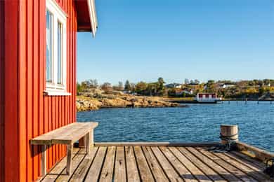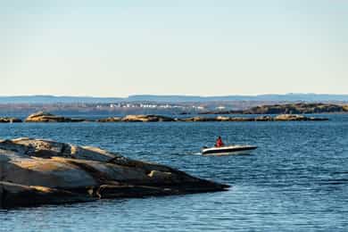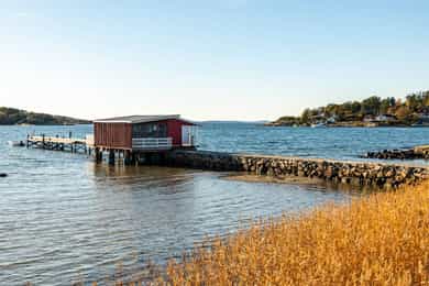 Moderne nordiske trehus oppføres ved sjøkanten i Onsøys skjærgård. Arkitektegnede med lys, luft og store uteområder.
