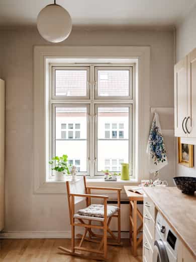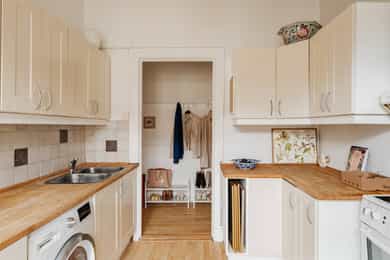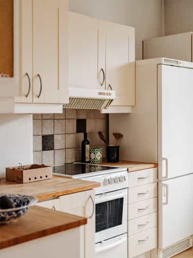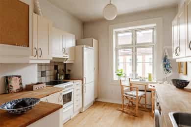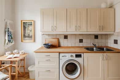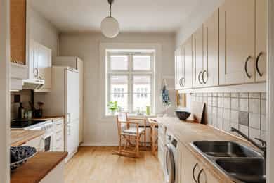 Hvitevarer og vaskemaskin på kjøkken medfølger.