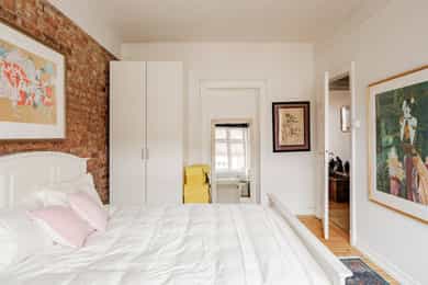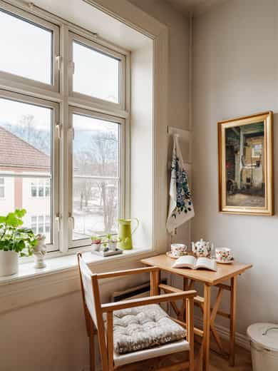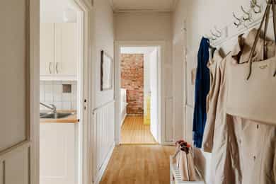 ENTRÉ Du blir møtt av en hyggelig entré med plass til oppheng av jakker og oppstilling av sko. I tillegg er det godt med lagringsplass i kjeller- og loftsbod. Det kommer nytt dørcallingsystem i 2026 som dekkes gjennom budsjett. STUE En lys og luftig stue med stort vindu, som gir en luftig atmosfære til rommet. Stuen har gode møbleringsmuligheter for sofagruppe, spisebord og annet møblement. Her får du et hyggelig utsyn mot bakgården, som er stille og rolig. Overflatene er malt i lyse farger, som gjør det enkelt å sette ditt eget preg. I hjørnet av stuen står det en koselig peisovn, som varmer godt på kalde dager. KJØKKEN Leiligheten har et romslig separat kjøkkenrom med flott vindu og utsikt mot Torshovdalen. En lys kjøkkeninnredning med profilerte fronter og heltre benkeplate med nedfelt oppvaskkum. Det er fliser mellom over- og underskap. Her får du rikelig med skap- og benkeplass, for både oppbevaring og matlagning. Det er installert en vaskemaskin, komfyr og frittstående kjøleskap. Ventilator med avtrekk ut over kokeplass. Det er alltid en fordel å montere en komfyrvakt og waterguard på kjøkken. SOVEROM Soverommet er romslig med en stilig teglsteinsvegg. Et stort vindu på soverommet med deilig morgensol. Det er god plass for dobbeltseng, garderobeskap og skrivepult. Det er satt inn garderobeskap for oppbevaring til klær. Det går en dør mellom stue og soverom. BAD Et stilrent bad fra 2011 med flislagte overflater. Badet ble pusset opp av tidligere eier. Innredningen består av servant i underskap og speilskap for oppbevaring. Videre er det veggmontert toalett og dusjnisje med glassdør. Naturlig ventilasjon.