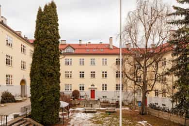OPPUSSING: Sjarmerende og gj.gående 2-roms i klassisk gård m/idyllisk bakgård | Peis, store vinduer og generøs takhøyde