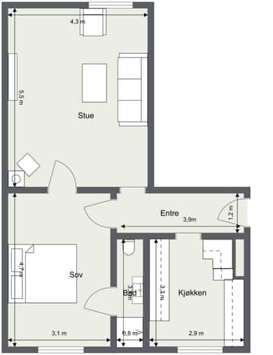 Totalt BRA: 55 kvm