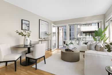 Lys og nymalt 2-roms selveier beliggende på hjørnet i nyere boligbygg fra 2008, presentert av Vemund Thorkldsen. Perfekt for deg som jakter en "nøkkelklar" leilighet med gangavstand til "alt". Leiligheten ligger i et meget ettertraktet og populært område. Leiligheten har en særdeles sentral beliggenhet med gåavstand til hyggelige handlegater, Frognerparken, Bygdøy Sjøbad, samt meget gode kollektivmuligheter. INFO: - God og effektiv planløsning - Stor balkong m/ både morgen- og ettermiddag sol - Flislagt bad m /varmekabler og plass til tørketrommel og vaskemaskin - Gode lagringsmuligheter i bod (5m²) - Gode muligheter for garasjeleie med elbil lader for ca kr 2 000,- pr. mnd. Velkommen til visning! Ta kontakt om oppsatt visning ikke passer!