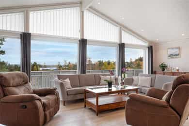 • Utsikt mot naturskjønne omgivelser og fjorden.
