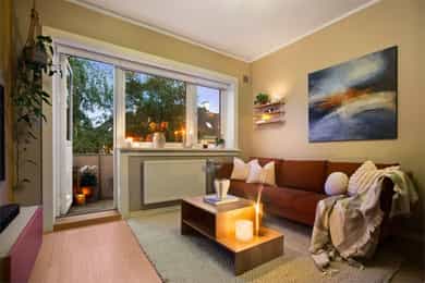 Attraktiv og innbydende leilighet m/balkong og gode solforhold - Varmtvann/fyring inkl. - Rolig og tilbaketrukket område