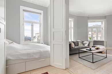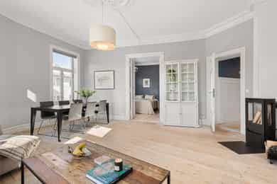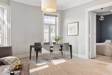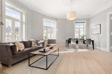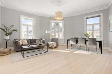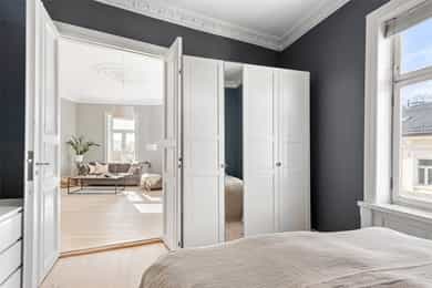 Klassisk og meget attraktiv 5r m/etterspurt beliggenhet i Stensgata. Leiligheten ligger høyt og fritt i byggets 4. etg. m/store vindusflater som skaper en helt spesiell atmosfære og flotte lysforhold. Her får man en sjelden kombinasjon av vakre, originale detaljer som stukkatur, rosetter, meget god takhøyde og moderne standard etter oppussing i 2016/17; nyoppusset bad, kjøkken, overflater og el-anlegg. Tak/vegger i stuen nymalt i 2026. Leiligheten byr på hele fire soverom, en luftig stue m/gode møbleringsmuligheter og et separat kjøkken m/spiseplass. Stort og lekkert bad m/wc+sep. wc. Man kan enkelt åpne de to soverommene ved siden av stuen for å få ytterligere en stue. Høydepunkter: Klassisk hjørneleilighet Fantastiske lysforhold Vakre detaljer + peis Umiddelbar nærhet til Stensparken