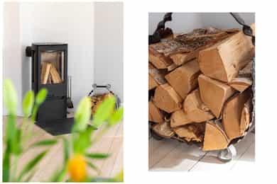 Elektrisk oppvarming og peis i stue.