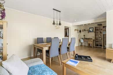 Velkommen til Lensmann Haaversens vei 153 – en velholdt og pen andelsleilighet over to etasjer. Beliggenheten er landlig, rolig og attraktiv, med nærhet til busstopp og matbutikk, samt kort vei til idrettsanlegg, treningsentre og populære turområder. Videre kan eiendommen skilte med velstelte fellesområder, garasje i rekke og en egen, herlig takterrasse på ca. 52 kvm med upåklagelige solforhold og langstrakt, naturskjønn utsikt. Kort fortalt: - Velholdt og pen bolig over 2 etasjer - Garasje i felles rekke medfølger - Forkjøpsrett avklart - Egen takterrasse på ca. 52 kvm! - Gode solforhold og nydelig utsikt - Luftig stue med varmepumpe - IN-ordning(mulighet til å nedbetale andel fellesgjeld) - Fasaden er oppgradert, inkludert nye vinduer og ytterdører i 2023 Velkommen!