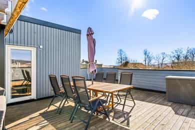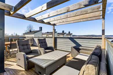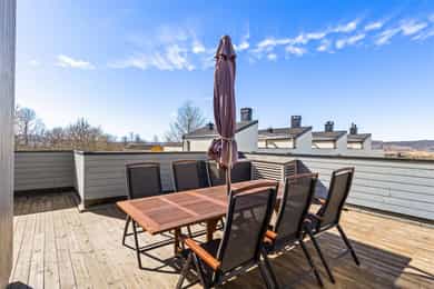 Velholdt og pen andelsleilighet over 2 etasjer - Varmepumpe - Solrik takterrasse på 52 kvm - Fantastisk utsikt - Garasje