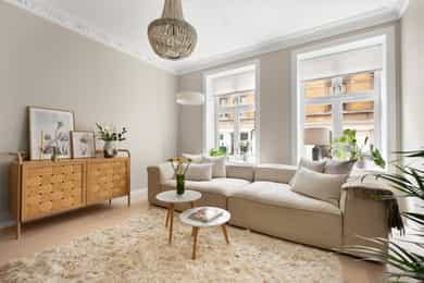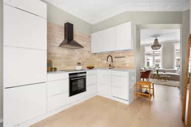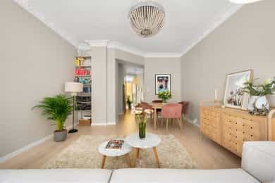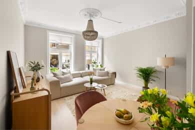 Nordvik har gleden av å presentere Ebbells gate 5B! En klassisk og lekker leilighet som ble totalrenovert i 2022/2023. Her er det valgt flotte og delikate materialvalg. Leiligheten ligger i en høy 1. etasje i 1890-gård som gikk gjennom en omfattende rehabilitering i 2006 med bl.a: nye rør, vinduer, tak og etterisolering. Boligen har en godt utnyttet planløsning som består av separat kjøkken med utgang til en nordvestvendt balkong, romslig stue, et lunt soverom mot bakgård med fin garderobeløsning og et flislagt baderom fra 2022. Kort fortalt: