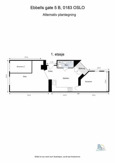 Leiligheten består av kjøkken, stue, soverom og et flislagt bad. I tillegg disponerer boligen en kjellerbod på ca. 3,7 kvm.