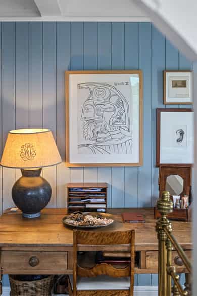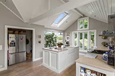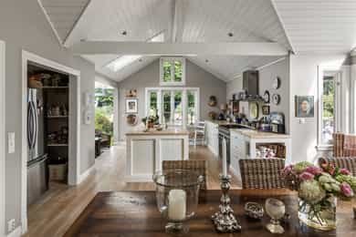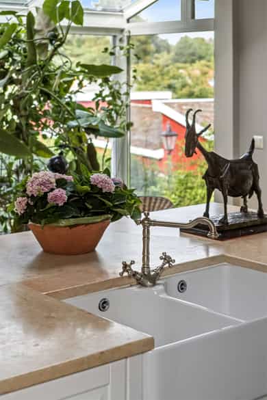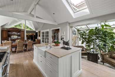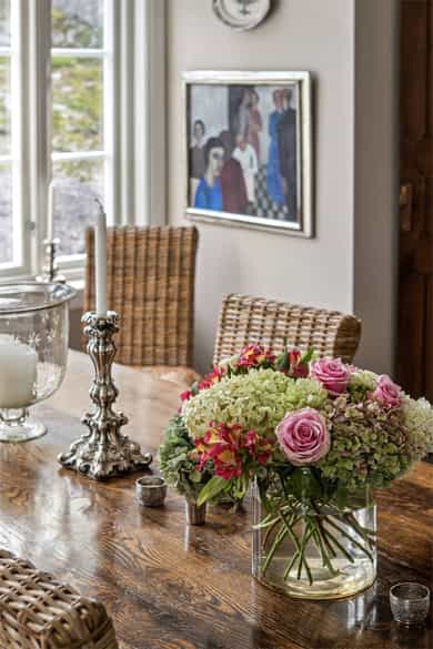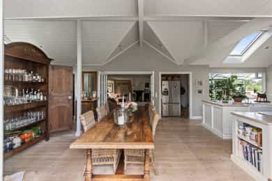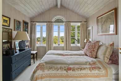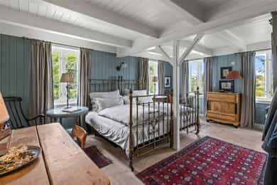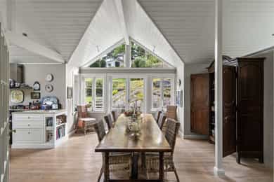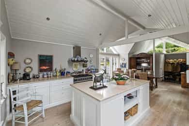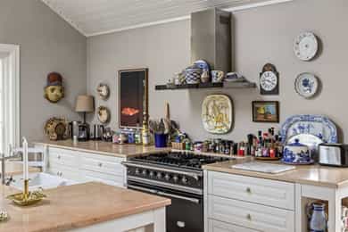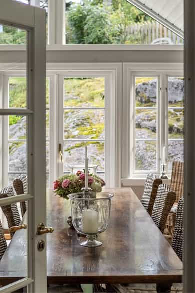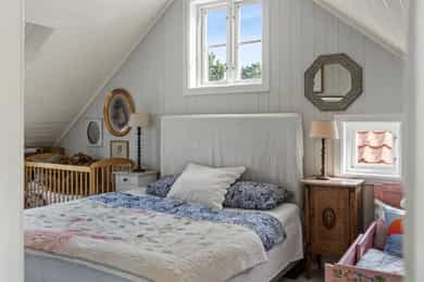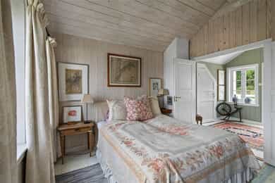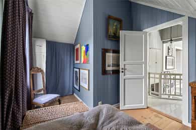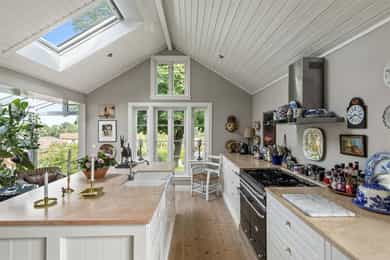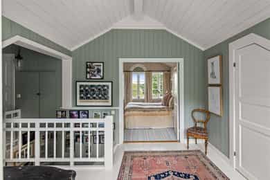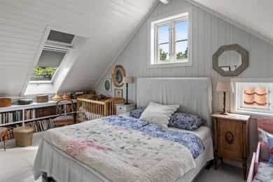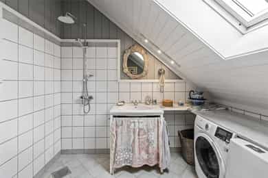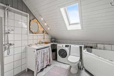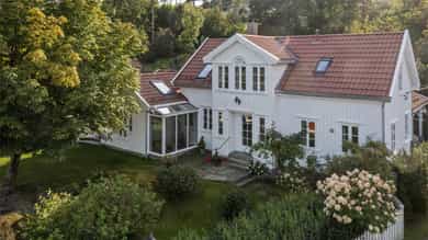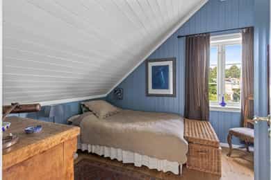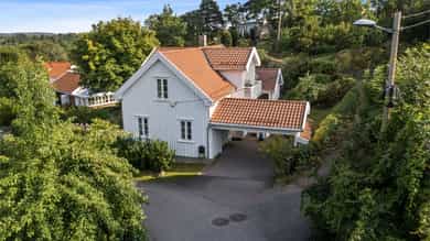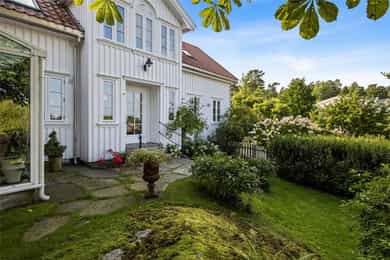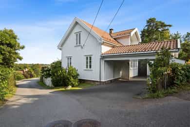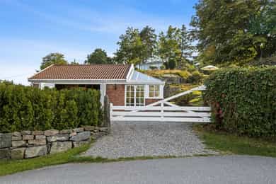 Entreen Velkommen inn i en sjarmerende enebolig med pent utført snekker- og malerarbeid. Stilen er gjennomført, med duse farger, delikat interiør og klassiske elementer som profilerte listverk. Boligen har et overbygd og godt skjermet inngangsparti med tofløyet ytterdør. Vel inne passer det fint å innrede med knagger og hyller i en liten entré med varme under flislagt gulv. Kjøkken Entreen glir sømløst over i et flott kjøkken, med furugulv, egen spisestue og en helt nydelig atmosfære. Det er ingen direkte innsyn, og lyset strømmer inn via vinduer i alle retninger. Vinduene inkluderer et takvindu, et stort karnapp og en tofløyet glassdør til en av de steinlagte uteplassene. Dagslyset suppleres ypperlig av downlights, og sammen med alt lyset bidrar ekstra takhøyde til en herlig og luftig atmosfære. Innredningen er klassisk og pent tilpasset, med hvite, profilerte fronter, lekker benkeplate av carrarra-marmor og et elegant armatur ved en dobbel porselenskum. Som samlingspunkt er det etablert en stor kjøkkenøy, perfekt til måltider og gode samtaler, men også for lekselesing mens middagen tilberedes. For et luftigere uttrykk er overskap droppet til fordel for åpne flater, men det er likevel godt med både skap- og benkeplass på kjøkkenet. Av hvitevarer har kjøkkenet en stor gasskomfyr, en integrert oppvaskmaskin og et side by side kjøleskap med isbitmaskin. Over kokesonen er en ventilator installert, og inn til stuen har kjøkkenet en dobbelfløyet glassdør. Stue Stuen er et innbydende oppholdsrom, med god møbleringsfrihet og fint gjennomlys via vinduer på begge sider av rommet. Midt i rommet sørger en jernovn og en oppmurt peis for ekstra varme og hygge. Atmosfæren er lun og intim, og en glassdør fører ut til den vakre hagen. Tregulvet fra kjøkkenet fortsetter inn i stuen, i kombinasjon med beige panelvegger og hvitmalte takbjelker. Utformingen gjør stuen enkel å møblere med flere sittegrupper i ulike soner. Bad/wc/vaskerom Planløsningen er praktisk, med bad i begge etasjer. Badet nede er helfliset, utstyrt med toalett, varmekabler og en svingbar glassvegg i dusjhjørnet. Baderomsinnredningen består av en søyleservant og et speil med tilhørende hylle. Bad 2 Badet oppe har lysegrå gulvfliser, kombinert med hvite fliser og gråmalt panel på veggene. På badet er det både et hjørnebadekar og et åpent dusjhjørne med regnfallsdusj. Varme er lagt under gulvet, og badet har toalett og opplegg for vaskemaskin under en hendig benk. Den øvrige innredningen består av et elegant speil og en hvit servantseksjon med hyller. Soverom og garderobe Boligen har til sammen fire pene soverom, fordelt med ett i første etasje og tre sammen i andre etasje. Hovedsoverommet nede er meget romslig, malt i en dus blåtone for en behagelig atmosfære. Rommet får mye lys fra to retninger, og det er god plass til både dobbeltseng og annet møblement. Plassbygd i rommet er det mye oppbevaring i fine garderobeskap holdt i den samme fargen som veggene. Gangen utenfor er innredet med plassbygde skap, og godt med ekstra lagringsplass finnes i garasjen. I tilknytning til eiendommen er det pliktig medlemskap i Hagakilen båtforening, for å kunne ha garantert båtplass. Her tildeles det båtplasser etter ansiennitet. Kostnad pr. plass pr år er forskjellige, men ligger på et sted mellom kr. 2600-3600. Båtplassene har en lysåpning på ca. 2,70m - det er forskjellige dybder på alle. Tilstandsrapport for boligen er vedlagt salgsoppgaven. Se denne for nærmere informasjon om tilstandsgrad.