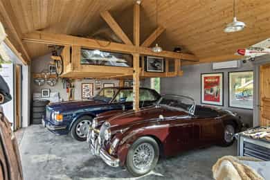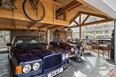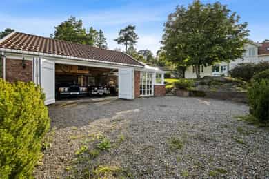 Det er parkering i en stor garasje/anneks fra 2015, med fullisolerte vegger, to gode foldeporter og et samlet areal på ca. 124 kvm. Garasjen/annekset holder en svært høy standard, der en hems med glassrekkverk benyttes for lagring og avkobling. Vann er innlagt, og garasjen har et hendig bad med åpent dusjhjørne. Selve garasjerommet utgjør ca. 62 kvm, mens de resterende kvadratmeterne er innglasset og innredet med salonggruppe. Utvendig er garasjen kledd med teglstein, og bygget ligger på en gruslagt gårdsplass med hvitmalt port ut til veien. Ved hovedinngangen har boligen en asfaltert adkomst med carport på ca. 20 kvm. Øvrig parkering etter områdets gjeldende bestemmelser.