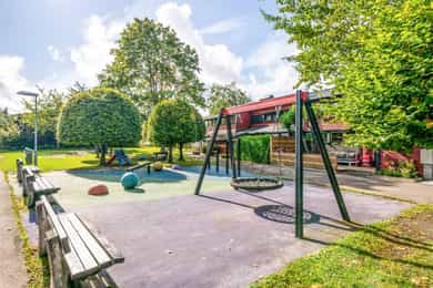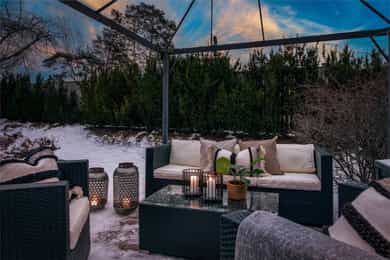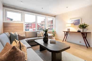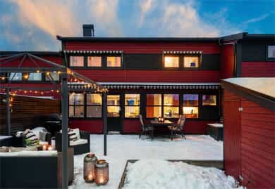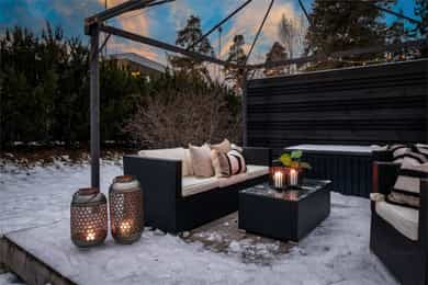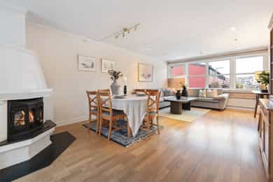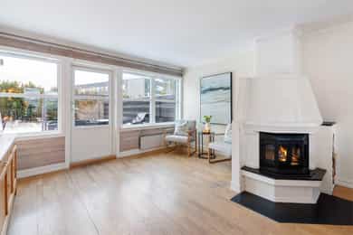 Solrikt og tilbaketrukket rekkehus på bilfritt og barnevennlig tun | Garasjeplass | Skjermet uteplass på 52 kvm | Peis