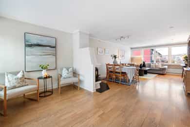 Velkommen til et flott rekkehus med solrike uteplasser på et bilfritt boligtun. Boligen går over to plan med en arealeffektiv og familievennlig planløsning, samt god intern beliggenhet. Flere fine uteplasser hvorav en med over 50 kvm platting. - Familievennlig planløsning - Solrik uteplass med over 50 kvm platting - 4 soverom - Bad, vaskerom og gjestetoalett - Peis i stue - Garasjeplass med lader - Etterisolerte yttervegger og nye vinduer i 2018 - Barnevennlig tun med egen lekeplass Eiendommen sogner til populære Nordseter barne- og ungdomsskole, som også er nærmeste nabo. Videre har boligen en svært attraktiv beliggenhet i veletablert og idyllisk villaområde på Nordstrand. Kort vei til trikk, buss, nærbutikk og Lambertseter Senter som har alt av nødvendige butikker og servicetilbud.
