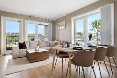 I samarbeid med Storebrand og HELP tilbyr Nordvik Boligkjøperpakke til våre boligkjøpere. Boligkjøperpakken er et gunstig forsikringskonsept som inneholder alle de forsikringene du trenger til den nye boligen din. Boligkjøperpakke Leilighet inneholder: Boligkjøperforsikring fra HELP, flytteforsikring og innboforsikring Super. Boligkjøperforsikring er en rettshjelpsforsikring som gir trygghet og profesjonell juridisk hjelp dersom det oppdages uventede feil eller mangler ved boligen. Forsikringen gjelder i 5 år fra overtakelsen. Flytteforsikring dekker skade på eiendeler under flytting ved plutselig og uforutsett hendelse som oppstår under transport eller i forbindelse med bæring mellom bolig, bil eller lagringssted. Forsikringen varer i 1 år fra overtakelsen. Innboforsikring Super dekker tingene dine ved blant annet tyveri, brann eller vannskader. Vår beste innboforsikring Super inkluderer blant annet uflaksforsikring, bistand ved ID-tyveri og psykologhjelp ved alvorlige hendelser hjemme. Forsikringen gjelder i 3 måneder fra overtakelsesdatoen av ny bolig. Velger du Boligkjøperpakke Leilighet+ får du i tillegg renteforsikring: Renteforsikringen kan hjelpe deg med rentekostnaden og forsikringspremien på din primærbolig som skal selges, hvis salgsprosessen fører til at du må betale rentekostnader på to lån. Forsikringen gjelder i 9 måneder (3 måneder karenstid) og dekker inntil 15 000 kroner i måneden. Boligkjøperforsikring fra HELP kan også kjøpes separat og inkluderer da flytteforsikring fra Storebrand. Boligkjøperpakke/Boligkjøperforsikring må tegnes senest ved kontraktsignering og gjelder fra overtakelsen. Kjøper blir kontaktet av Storebrand med et tilbud på videre forsikring av innbo. Se pris og mer informasjon om forsikringene i produktarket vedlagt salgsoppgaven, eller ta kontakt med megler.