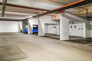 Leiligheten disponerer garasjeplass nr. 23 i sameiets fellesanlegg. Sameiet kan på et senere tidspunkt omdisponere denne bruken. Etter eierseksjonsloven § 26 kan styret, etter krav fra en seksjonseier med nedsatt funksjonsevne, pålegge en annen seksjonseier uten behov for tilrettelagt plass å bytte parkeringsplass. Dette gjelder kun dersom seksjonseieren med nedsatt funksjonsevne allerede disponerer en parkeringsplass i sameiet. Med samtykke fra styret kan en seksjonseier anlegge ladepunkt for elbil og ladbare hybrider ved parkeringsplassen som seksjonen disponerer, eller andre steder som styret anviser. Styret kan bare nekte å samtykke dersom det foreligger en saklig grunn, jf. eierseksjonsloven § 25. Det er felles infrastruktur for elbillading i garasjeanlegget, og selger opplyser at det er etablert ladeboks fra Elaway. Kjøper må selv tegne abonnement, og forbruk kommer som egen faktura. Selve abonnementet koster kr. 79,- per måned. Sameiet har tre stk. gjesteparkeringer i parkeringskjelleren. Disse skal benyttes beboere sine gjester mot lapp i ruta. Det er parkering etter områdets gjeldende bestemmelser.
