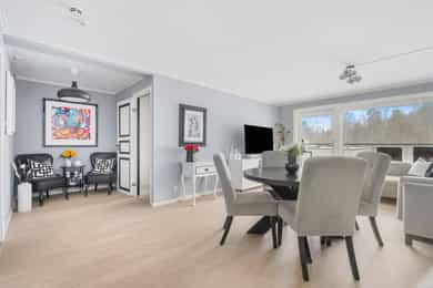 Lys og usjenert 2-roms i 6. etg med heis, vestvendt balkong og garasjeplass. God intern beliggenhet, vendt mot grønne omgivelser med idyllisk utsyn og gode solforhold. Leiligheten har en god planløsning med gjennomførte oppgraderinger. Tilbaketrukket og rolig, samtidig sentralt nær dagligvare, T-bane og buss.