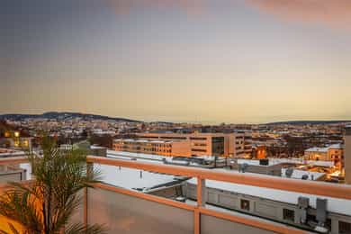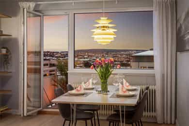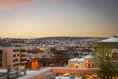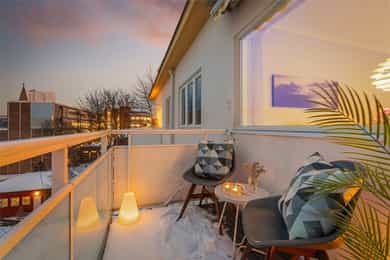 Lys og lekker 3-roms med balkong og flott utsikt - Fyring & v.v inkl. - Peis - HTH kjøkken - Vinduer fra 2021 - Sentralt