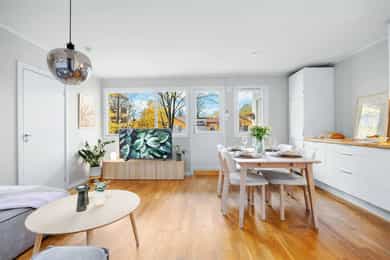 Velkommen til Dynekilgata 15. En lys og lettmøblert 2 roms leilighet i byggets 2. etasje med heis. Leiligheten har store vindusflater som gir gode lysforhold og et åpent utsyn. Fra stuen er det utgang til en romslig balkong på ca. 9 kvm med fine solforhold og hyggelig uteplass. Boligen har en effektiv planløsning med et stort og funksjonelt kjøkken som gir god plass til både hverdagsliv og matlaging. Her bor du i rolige omgivelser, samtidig som du har kort vei til kollektivtransport, parker og byens fasiliteter. Carl Berner, Torshov, Grünerløkka og sentrum nås enkelt. Høydepunkter: