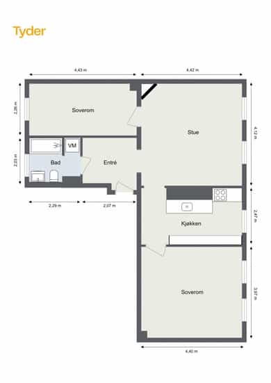 BRA-i: 71 kvm. Bad, entré, stue, kjøkken, to soverom