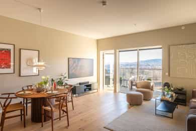 Velkommen til Ensjøveien 4G! Lekker og moderne 3-roms leilighet i 5. etasje med heis, store vindusflater og en herlig balkong. Leiligheten har en svært god planløsning med innbydende entré, romslig åpen stue- og kjøkkenløsning med utgang til balkong, to soverom og flislagt bad med opplegg for vaskemaskin. Bygget stod ferdig i 2023, noe som gir deg moderne standard, tidsriktige materialvalg og minimale vedlikeholdsbehov i mange år fremover. Ensjø er et populært område i vekst! Fasiliteter: - Høy standard - Nybyggaranti - Kjellerbod på 5m² - Felles takterrasse - A-konto varme inkludert - God takhøyde på 2,9 meter - Herlig balkong på ca. 13 m² - Mulighet for kjøp av garasjeplass - Vannbåren gulvvarme og balansert ventilasjon - Elektrisk utvendig solskjerming på soverommene