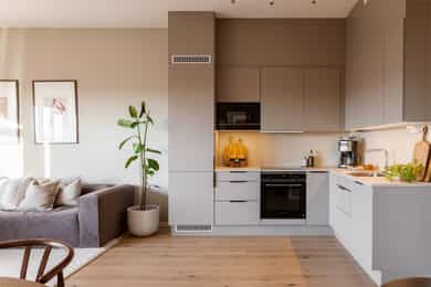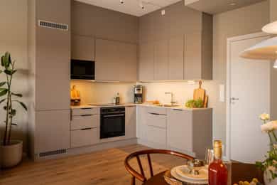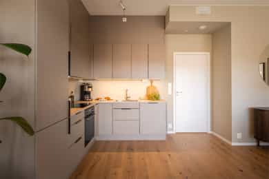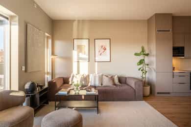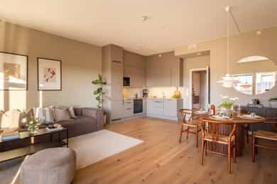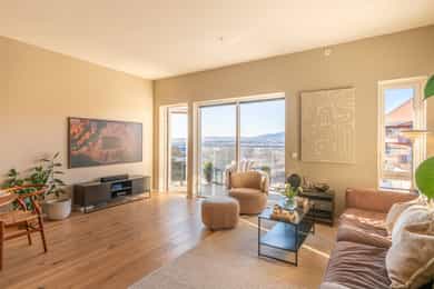 Moderne og lekker 3-roms med høy standard, balkong og heis | Nybygg fra 2023 | Akonto fyring/v.vann | Felles takterrasse