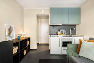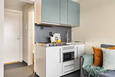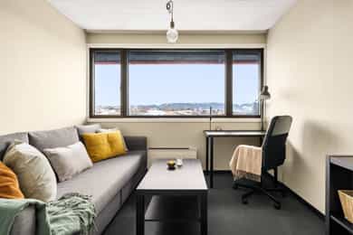 Flott 1-roms andelsleilighet på attraktive Byåsen. Gratis treningsrom. Oppgradert kjøkken og bad 2021. Ingen dok.avgift.