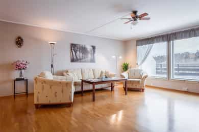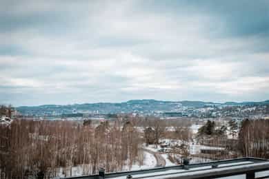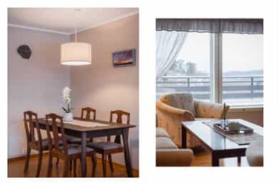 Romslig og tiltalende 3-roms eierleilighet, attraktivt beliggende. Nydelig utsikt. Suverene solforhold. Dobbel garasje.