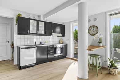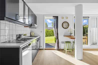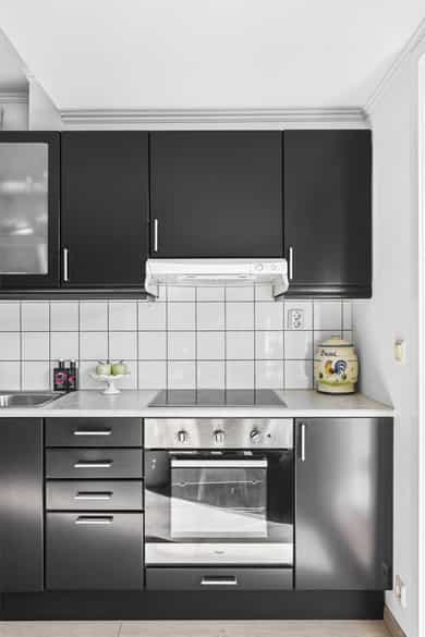Hvitevarer på kjøkken medfølger i handelen.