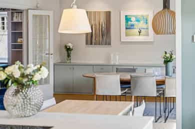 Taklampe i spisestue, på kjøkken og på barnerom.