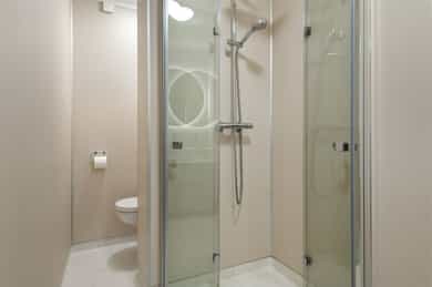 BOLIGBYGG MED FLERE BOENHETER Utvendig: Vinduer: Trevinduer med 2-lags isolerglass. Dører: Leilighetsdør til felles gang med brann- og lydmotstand og kikkehull. Balkongdør i treverk med 2-lags isolerglass. Balkonger, terrasser og rom under balkonger: Innglasset balkong på ca. 5 m² mot sør med adkomst fra stue. Konstruksjoner i betong. Rekkverk av fasadeplater og metall. Åpningsglass over rekkverk. Rekkverkhøyde på ca. 108 cm. Innvendig: Etasjeskille/gulv mot grunn: Etasjeskiller i betong. Det er målt ca. 30 mm høydeforskjell på gulv på stue. Avvikene som er målt er innenfor kravene i NS3600. Skjevheter er målt i to tilfeldige rom i hver etasje, noe som er kravet i avhendingsloven. Større overflate-avvik kan ikke utelukkes i rom som ikke er målt. TG2 Dører • Balkongdør: Døren er hard/vanskelig å lukke, lukkemekanisme går tregt. Konsekvens/tiltak: • Slitasje på vrider og låsemekanisme kan medføre redusert funksjon, vanskelig bruk, og økt risiko for at dør ikke lar seg låse eller åpne som tiltenkt. Dette kan gi svekket sikkerhet og brukskvalitet. Vrider og låsemekanisme bør kontrolleres, og ved behov repareres eller skiftes ut for å sikre normal funksjon og tilfredsstillende sikkerhet. Balkonger, terrasser og rom under balkonger Rekkverket er for lavt i forhold til dagens krav til rekkverkshøyder. • Dagens krav til høyde på rekkverk er 120 cm der høyde til terreng er mer enn 10 meter. Rekkverket er lavere. Konsekvens/tiltak: Det er ikke krav om utbedring av rekkverkshøyde opp til dagens forskriftskrav. Etasjeskille/gulv mot grunn • Det er påvist totalt høydeavvik over 15 mm. • Knirk i gulv registrert ved soveromsdør. Konsekvens/tiltak: • For å få tilstandsgrad 0 eller 1 må høydeforskjeller rettes opp. Det vil imidlertid sjelden være økonomisk rasjonelt som et enkeltstående tiltak i en bolig som dette. Dersom boligen en gang skal renoveres, kan man vurdere slike tiltak. • Knirk i gulv-laminat skyldes normalt ujevnheter i underlag, for å unngå knirk må gulv legges på tilstrekkelig plant underlag. 3. Etasje - Bad - Overflater Gulv • Det er registrert riss i fuger. • Det er ikke synlig tilstrekkelig sikring av lekkasjevann ved dørterskel. Konsekvens/tiltak: • Det anbefales ytterligere undersøkelse av fagperson som kan gi en vurdering av om det er nødvendig med utbedring. Riss/sprekker i flis/fug kan være en indikasjon på avvik i bakenforliggende konstruksjon. Det vil være viktig å vurdere eventuell skade på underliggende membran ved å utbedre/ ikke utbedre avviket. • Ved eventuell lekkasje er det fare for at vann ikke føres til sluk. Fuktskader på konstruksjon kan oppstå. Gulvet skal avgrenses av en oppkant med vanntett sjikt på minst 25 mm på alle sider, unntatt mot døråpning der oppkanten må være minst 15 mm over ferdig gulv. Oppkant ved døråpning er under 15mm over ferdig gulv. 3. Etasje - Bad - Sluk, membran og tettesjikt • Det er ikke fremvist dokumentasjon på utførelse og materialer for våtrommets tettesjikt. Våtrommets tettesjikt er innebygd og er derfor ikke mulig å vurdere uten dokumentasjon. Konsekvens/tiltak: • Det er ikke påvist synlig skade på våtrommet som kan kobles til membran/tettesjikt og lekkasjesikring, men det kan ikke verifiseres om våtrommet har fungerende tettesjikt. Ikke fungerende tettesjikt på våtrom kan føre til skjult skade på tilstøtende/innebygde bygningsdeler som kan være vanskelig å avdekke på et tidlig tidspunkt. Dersom det skal kunne verifiseres utførelse av tettesjikt på våtrommet må dokumentasjon i form av bilder/sjekklister/kontrollerklæring for utførelse og samsvar for benyttede materialer framlegges. Dersom dette ikke kan fremskaffes anbefales det å følge med på tilstand til våtrommet og tilstøtende bygningsdeler/rom. 3. Etasje - Kjøkken - Avtrekk • Kjøkkenventilator har ventilator med omluft (Kullfilter). Konsekvens/tiltak: • Ventilator med avtrekk ut anbefales etablert. Ventilasjon • Ventilasjonen tilfredsstiller ikke dagens krav til komfort. Det er ikke veggventil på soverom. Konsekvens/tiltak: • Veggventiler må etableres for å lukke avviket. Dette for å bedre innemiljøet i boligen. TGIU 3. Etasje - Bad - Tilliggende konstruksjoner våtrom Hulltaking for fuktmåling i tilstøtende konstruksjon er ikke gjennomført da det ikke er fysisk mulig pga. tilliggende konstruksjoner. Fuktsøk på overflater er foretatt. Når hulltaking for fuktmåling ikke er gjennomført på grunn av konstruksjonens oppbygning og manglende fysisk tilgang, innebærer dette en begrensning i undersøkelsen. Det kan ikke utelukkes at skjulte fuktforhold eller skader foreligger i konstruksjonen. Tilstandsgrad ikke undersøkt (TGIU) er derfor valgt for dette kontrollpunktet. Ved bruk av fuktindikator på utsatte steder registrerte jeg ingen unormale verdier.