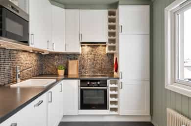 Integrerte hvitevarer på kjøkken medfølger salget.