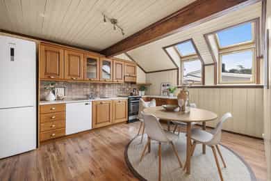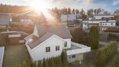 Enebolig med flott utsikt og stor terrasse. Inneholder bl.a. 4 soverom og 2 bad. Skiftet tak, kledning og vinduer i 2002