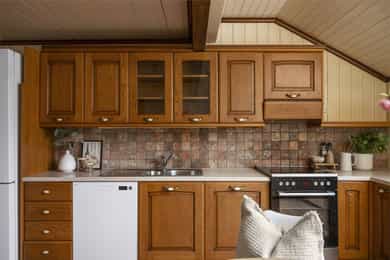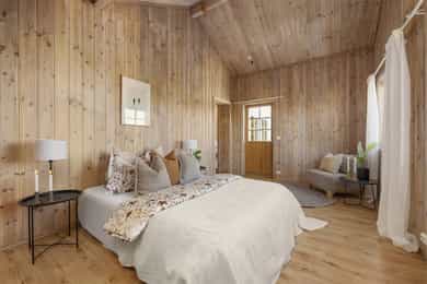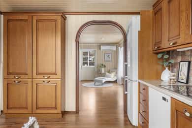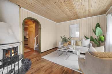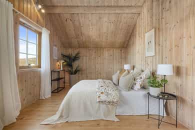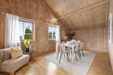 • 1. etg: Entré/hall, vinkelstue, soverom (evt. tv-stue/spisestue), kjøkken, bad og vaskerom.