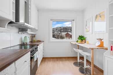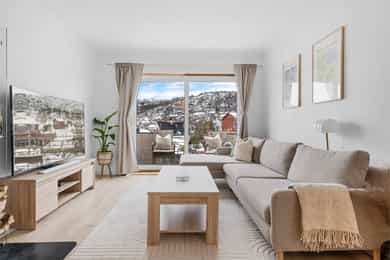 Boligen har en sentral og attraktiv beliggenhet med nærhet til det meste man skulle trenge i hverdagen. For den turglade har man flotte turmuligheter i umiddelbar nærhet med både Løvstakken og Damgårdsfjellet på hver sin side. Ønsker man en koselig spasertur kan man gå til Stroavatnet ved Krohnegården. Her er det også laget til en flott badeplass med sandstrand hvor man kan nyte late dager på sommeren, eller stå på skøyter på vinterstid. Det er også gode tur- og soppområder i nærområdet. Beliggenheten passer ypperlig for alle aldersgrupper med busstopp kun 5 minutters gange fra boligen. Buss nr. 19 tar deg raskt inn til sentrumskjernen med hyppige avganger. For de minste er det flere barnehager og skoler i området. Fra boligen er det ca. 9 minutters gange til Rema 1000. For et større utvalg av butikker og servicetilbud ligger Oasen senter bare en kort kjøretur fra boligen. Her finner du rundt 70 butikker, vinmonopol, frisør, apotek, legesenter m.m. Et praktisk kjøpesenter som oppfyller alle hverdagslige behov. Videre er Bergen sentrum med alt bykjernen kan tilby kun en 11 minutters biltur unna. En kort prat med selger: Hva kommer du til å savne med boligen og området? - Landlig og rolig, selv så nærme sentrum. - Parkerings mulighetene på egen tomt. - Utsikten til Ulrikstårnet og flammerød sol på løvstakken på kveldene. - Grilling og bål på uteområdet. - El-sparkesykler: 10 min til byn/uib og 14 min til Høyskolen på Vestlandet! Beskriv naboene dine og nabolaget ditt: - Naboene er kjempegrei og hjelpsomme. - Nabolaget har alt man trenger fra idrettsanlegg til dagligvarebutikker. Fortell litt om nærmiljøet generelt: - Ekstremt bra turmuligheter. - Grønt og fint over alt. - Kan bade på sommeren i vannet og stå på skøyter på vinteren. Familie idyll på høyt plan! Hva er dine favoritt-turer i nærområdet? - Damsgårdsfjellet eller Løvstakken. - Er også veldig fin løperunde rundt vannet, eller ned til Hageland blomsterbutikken og rundt tilbake.