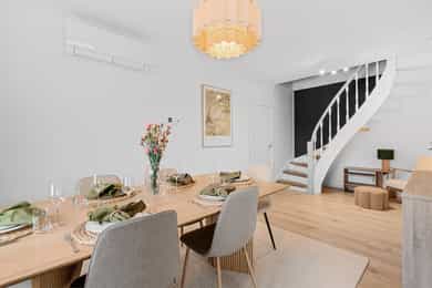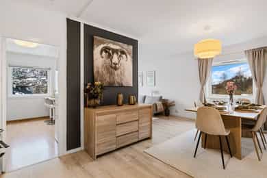 Innholdsrik halvpart av tomannsbolig over tre plan beliggende i et etablert og barnevennlig område på Laksevåg. Boligen kan skilte med flott utsikt, store uteplasser, rikelig med lagringsplass og gode kvaliteter. Området byr på gode oppvekstvilkår for barna! Her bor man med nærhet til skoler, barnehager, busstopp, butikk og idrettsanlegg. Høydepunkter: