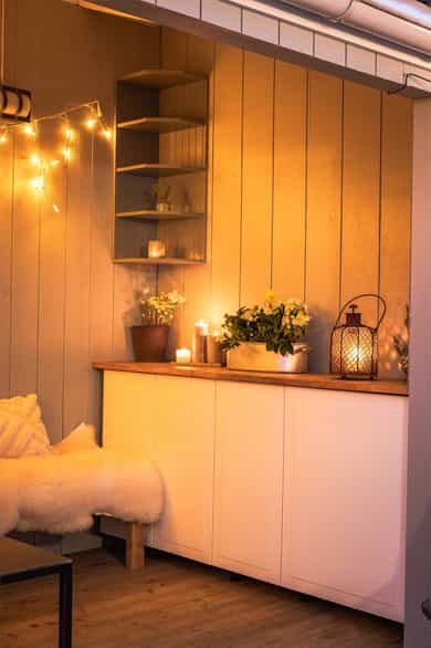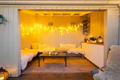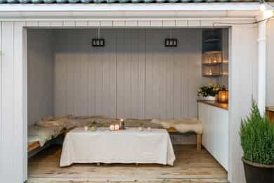 • Opparbeidet bakhage på ca 23 kvm med utekjøkken og isolert utebod