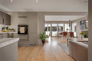Denne flotte boligen går over ett plan og er en lettstelt leilighet i et trivelig sameie. Med kort vei til både kollektiv transport, dagligvarebutikker og turmuligheter har en det en skulle trenge like i nærheten. Med en sørvendt solrik balkong har man utsikt mot det trivelige nabolaget og nærområdet ellers. Boligen har midlertidig enerett til fast parkeringsplass med carport og el-billader. Ellers verdt å merke seg at sameiet skiftet kledning på nordveggen av bygget i 2025. Her ligger alt til rette for å kunne trives! Fra inngangsdøren kommer man inn en lys og romslig entré med god plass til oppbevaring av sko og yttertøy. Her er det også tilkomst til boligens egne vaskerom og boligens lyse og flotte bad. Badet fikk nye dusjdører og vegghengte skap i 2022 og fremstår som pent med god oppbevaringsplass. Videre kommer man til den åpne stue-/kjøkkenløsningen på hele 36 m². Stuen er stor og åpen, med herlige og store vinduer som sørger for rikelig med lysinnslipp. Kjøkkenet er pent og moderne, med mer enn nok oppbevarings- og benkeplass. Fra stuen er det tilkomst til boligens sørvendte balkong hvor en kan nyte herlige sommerdager. I stuen ble det i 2012 satt opp en lettvegg for å lage et ekstra soverom, som ble boligens tredje. Alle soverommene har god plass til både seng, garderobeskap og ellers tilhørende møblement, perfekt for barnefamilien. Gjennomgående for både soverommene og resten av boligen er den lyse 1-stavs eikeparketten som gir boligen en rød tråd. Boligen disponerer også en egen bod på 5 m².