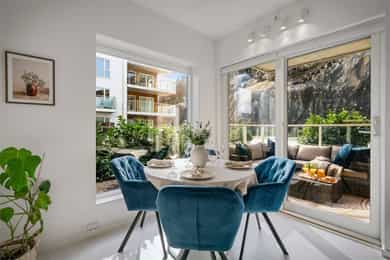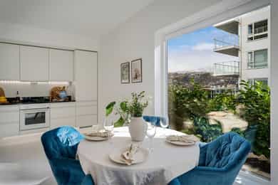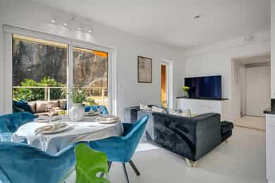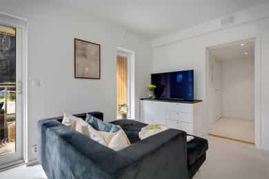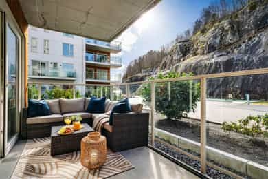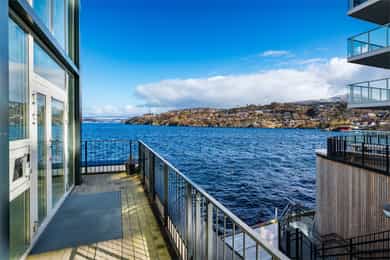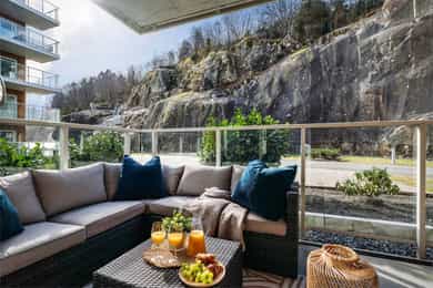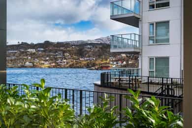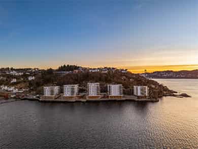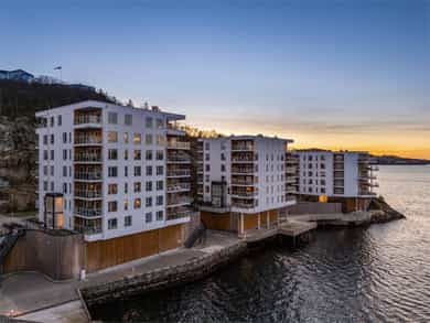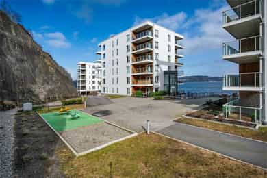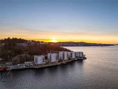 Nydelig 2-roms i sjøkanten med solrik terrasse! Nybyggsfordel og IN-ordning! Heis ned til garasjeplass med elbil-lader.
