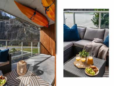 Særs lekker 2-roms i et ettertraktet, påkostet borettslag med nydelige fellesarealer, brygger, utsiktspunkt og et ordentlig flott garasjeanlegg med gjesteparkering. Bo maritimt og sjønært med bølgeskvulp i hagen, og ta heisen tørrskodd ned til egen garasjeplass m/elbil-lader!