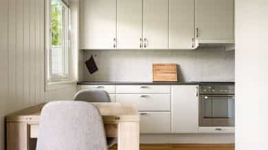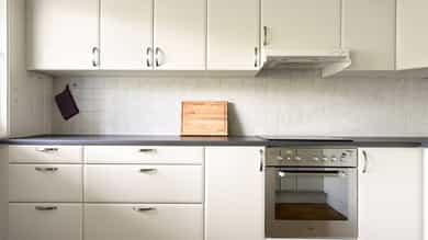 Følgende hvitevarer medfølger handelen: Komfyr, koketopp, kjøleskap med frys og oppvaskmaskin.