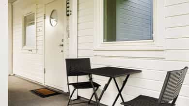 1. etasje Gang Velkommen inn i en romslig og innbydende gang med god plass til klær og sko. Soverom Leiligheten har to fine soverom, begge med garderobeløsning og plass til seng. Hovedsoverommet gir en behagelig atmosfære, mens det andre passer perfekt som barnerom, gjesterom eller hjemmekontor. Bad/vaskerom Lyst og praktisk bad med belegg på gulv og vegger. Rommet er innredet med servant, toalett, dusjkabinett og opplegg for vaskemaskin – en funksjonell løsning i hverdagen. Bod En innvendig bod gir deg ekstra lagringsplass. Stue/kjøkken Her møtes du av en åpen og sosial løsning mellom stue og kjøkken. Kjøkkenet er lyst med slette fronter, laminat benkeplate og integrerte hvitevarer. Stuen har god plass til både sofagruppe, spiseplass og TV-møbler, og de store vinduene slipper inn mye naturlig lys. Fra stuen er det direkte utgang til en koselig uteplass – perfekt for rolige stunder eller sosiale sammenkomster. Utvendig bod I tillegg får du en praktisk utvendig bod med plass til oppbevaring av sesongutstyr.