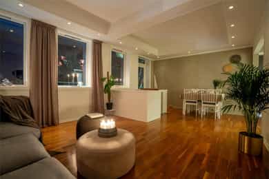 Velkommen til Roald Amundsens vei 9! En innholdsrik leilighet over to plan med en planløsning som skiller seg ut. Hovedetasjen byr på lyse oppholdsrom med utgang til terrasse, mens underetasjen gir et ekstra oppholdsareal som tilfører leiligheten en egen romfølelse. Leiligheten fremstår som gjennomtenkt og godt utnyttet, med en naturlig inndeling mellom etasjene og gode oppholdsarealer. Beliggenheten er sentral, med kort vei til sentrum og byens fasiliteter. Her har du gangavstand til butikker, treningssenter og øvrige servicetilbud, samtidig som området oppleves rolig og etablert. Ditt hjem? Velkommen til visning!