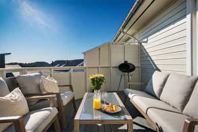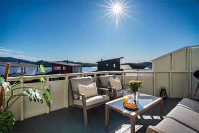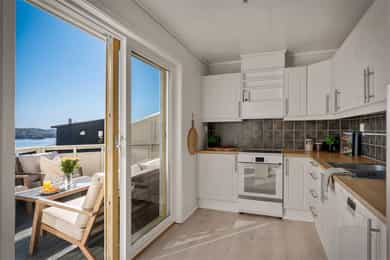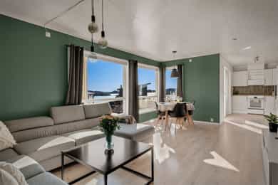 Herlig 3-roms selveierleilighet med solrik balkong på 14 m² og nydelig sjøutsikt! Biloppstillingsplass med el-billading.