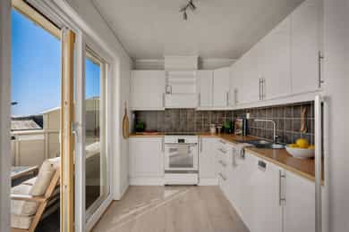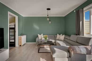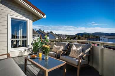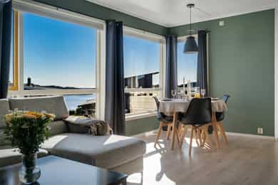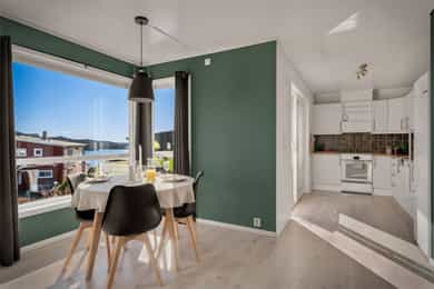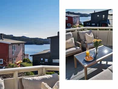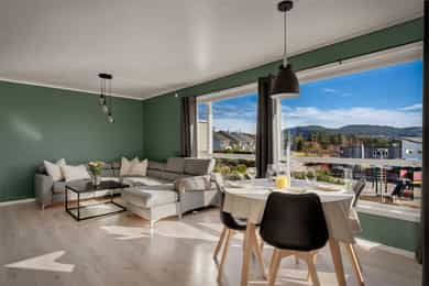 Velkommen til Sagstadvika 7F! Boligen har en fin beliggenhet i et rolig og barnevennlig område i Nordvik. Her bor man i naturskjønne omgivelser samtidig som at man har kort vei til det meste man skulle trenge i hverdagen! Fra stuevinduene har man fantastisk utsikt mot Lysefjorden og Lysøya. På Lysøya kan du oppleve Ole Bull sin eventyrlige villa. Fra boligen er det kort kjøreavstand til Kirkevoll skole som går fra 1-10 klasse, og Lysekloster barnehage ligger bare 6 minutters kjøring unna. Det er ca. 7 minutters kjøring til nærmeste dagligvare (Coop Extra, Kiwi og Bunnpris). Ønsker man et mer utvidet servicetilbud, ligger Lagunen Storsenter en kort kjøretur unna, og kan tilby det meste man skulle trenge i hverdagen. Lagunen er nylig blitt bygget ut og har over 160 virksomheter, hvorav 130 butikker, serveringssteder, kino og øvrige service- og tjenestetilbud. Her finner man også buss- og bybaneholdeplass. Bybanen tar deg raskt inn til sentrumskjernen eller ut til Flesland, og bussene her har avganger til de fleste stedene rundt om i Bergen. Det er gode bussforbindelser i området, og nærmeste busstopp ligger bare 3 minutters gange unna. Her går linje 62. Det sosiale med nabolaget har vært høyt verdsatt av selger. Det finnes et lokalt vel-hus (Gamle Nordvik skole) der det arrangeres jevnlig arrangementer for store og små. I forbindelse med jul og andre høytider er det ofte satt opp kostnadsfrie arrangementer til glede for lokalsamfunnet. Strikkekafé for den strikkeglade. En kort prat med selger: Hva kommer du til å savne med boligen og området? - Vi kommer til å savne utsikten, turområder og det gode nabolaget. Beskriv naboene dine og nabolaget ditt: - Det er et veldig inkluderende og fint nabolag. Her bor det folk i alle aldersgrupper. Vi har ett aktivitetshus hvor det blant annet blir arrangert både fritidsklubb for barna, strikkekafé og nabokafé. Fortell litt om nærmiljøet generelt: - Det er kort vei ned til sjøen, opp på fjellet og inn i skogen fra leiligheten. Det er mulighet for å leie båtplass nede ved kaien når det er ledige plasser. - Vi har en fin lekeplass rett nedenfor leiligheten. Rett over veien er det en flott fotballbane med kunstgress og der er det også en ekstra lekeplass. - Bussholdeplassen er også veldig nære, ca. 2 min. å gå. - Barne- og ungdomsskole samt barnehage ligger rett over fjellet, ca. 7 min. å kjøre. - Rett ved skolen ligger det både Kiwi, Extra og Bunnpris. - Lagunen Storsenter ligger ca. 17 min. å kjøre. Hva er dine favoritt-turer i nærområdet? - Det er veldig fine turstier innover skogen og opp på fjellet. Her kan en velge om en vil følge sti eller om en vil gå litt mer i terreng.