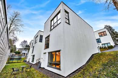 Velkommen til Gamle Enebakkvei 34B! Dette er en innholdsrik og stilren funkis enebolig over tre plan, med gjennomgående god standard og moderne kvaliteter. Eneboligen ligger sentralt til i et attraktivt, veletablert og naturskjønt boligområde på Skullerud med nærhet til flotte turområder, skoler, barnehager og offentlig kommunikasjon. Kvaliteter: -Funkis enebolig over 3 plan med familievennlig planløsning -Stor og flott terrasse på ca. 25 m² -Oppført i 2020 med nybyggkvaliteter -Moderne arkitektur -Hybel som sikrer gode leieinntekter -Deler av u.etg brukes til utleie -Tre romslige soverom -To baderom + WC-rom -Balansert ventilasjon -To praktiske boder ved inngangspartiet -Parkeringsplass m/elbillader -Nærområde er naturskjønt med turmuligheter og en rekke fasiliteter