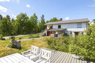 Enebolig med moderniseringsbehov på stor, solrik tomt! To garasjer - Utviklingsmuligheter - Barnevennlig og naturnært