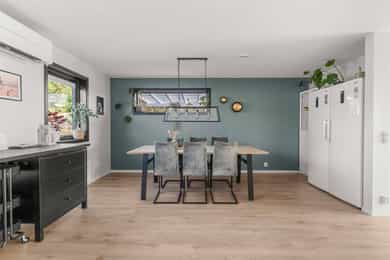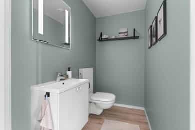 Vet du om det har det blitt utført arbeid på bad/våtrom, enten i din eller tidligere eiertid? Ja, faglært. Firmaets navn og beskrivelse av arbeidet: Fuget på nytt i dusj(utbygger) Vet du om det finnes dokumentasjon på hvordan bad eller vaskerom er bygget opp? Nei. Eventuell kommentar: Regner med utbygger har dette. Vet du om det er gjort endringer eller reparasjoner på tak, fasade, pipe/ildsted, terrasse, garasje, bod eller lignende, enten i din eller tidligere eiertid? Ja, faglært. Firmaets navn og beskrivelse av arbeidet: -Malt tak og fikset litt sprekker i taket (utbygger) -Byttet sprekte plater inne i peis (utbygger) -Det har vært byttet noen vinduer pga kvae utslag(utbygger) Vet du om det er gjort arbeid med drenering, enten i din eller tidligere eiertid? Nei. Eventuell kommentar: De har lagt stein rundt tomt. Vet du om det er gjort arbeid på det elektriske anlegget, enten i din eller tidligere eiertid? Nei. Eventuell kommentar: Kun ved el bil lader og varmepumpe. Vet du om boligen eller eiendommen har blitt endret eller bygget ut etter opprinnelig byggeår, enten av deg eller tidligere eiere, herunder bruksendringer kjeller/loft etc.? Nei. Eventuell kommentar: Kun pergola på terrassen Vet du om det har vært utført kontroll av installasjoner for eksempel oljetank/sentralfyr/ventilasjon? Ja. Beskriv: Ja vi har nettopp hatt rens av ventilasjon i hele boligen. Alltid byttet filter 2 ganger i året. Vet du om det er gjort radonmåling på eiendommen, enten i din eller tidligere eiertid? Nei. Eventuell kommentar: Boligen er ny og det er ikke nødvendig. Vet du om det er eller har vært feil ved bad/vaskerommet, f.eks sprekker, lekkasje, råte, lukt eller soppskader? Ja. Beskriv: Flis i dusjhjørnet har blitt fuget på nytt av utbygger. Vet du om det er eller har vært problemer med mur/pipe/ilsted, for eksempel dårlig trekk, sprekker, pålegg, fyringsforbud eller liknende? Ja. Beskriv: Byttet plater i peis på garanti (utbygger) Vet du om det er eller har vært feil på tilbehøret som følger med eiendommen? Ja. Beskriv: En liten sprekk i platetopp på kjøkkenet, men den fungerer helt normalt. Vet du om det er utført tidligere arealoppmålinger av boligen, eller om boligens areal er oppgitt i dokumenter som salgsoppgave, takstrapport, tilstandsrapport, byggesøknad eller lignende? Ja. Hvilket dokument og når er målingen foretatt? Når vi kjøpte den av utbygger. Vet du om det er forslag eller vedtatte reguleringsplaner/andre planer, nabovarsler/byggegodkjenninger /byggeplaner eller andre offentlige vedtak som kan medføre endinger i bruken av eiendommen eller eiendommens omgivelser/naboer? Ja. Beskriv: Det har nettopp blitt bygget en bolig ved siden av oss som skal stå ferdig i mars. Mulig det blir bygget en til over den, men ikke fått noe varsel på det. Vet du om det er noe annet ved eiendommen som det kan være viktig for kjøperen å vite om? Nei. Eventuell kommentar: Nybygg garanti frem til mai 2026.